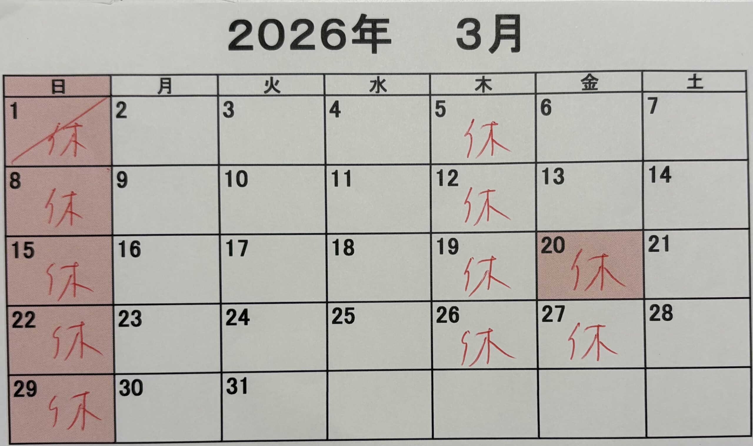 3月の休診日についてのお知らせ